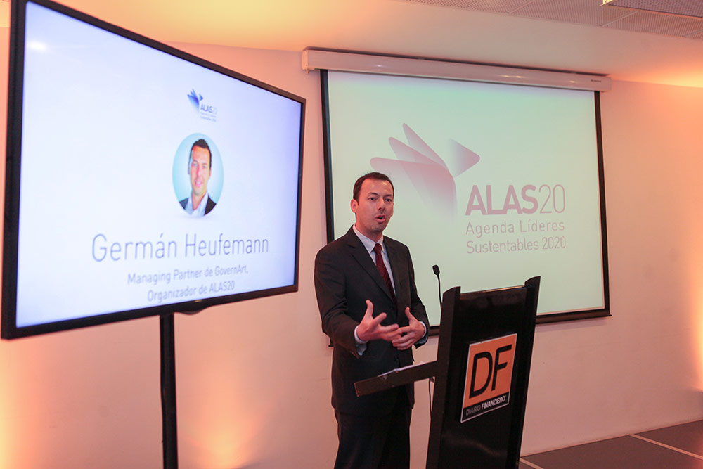 ALAS20 es una agenda programática que busca impulsar en América Latina el desarrollo sustentable desde la gestión empresarial y las decisiones de inversión, como una vía efectiva para lograr un mundo más sustentable, equitativo e inclusivo. En su primer año, ALAS20 ha sido realizada en Chile, para continuar el 2015 con Perú y Colombia.