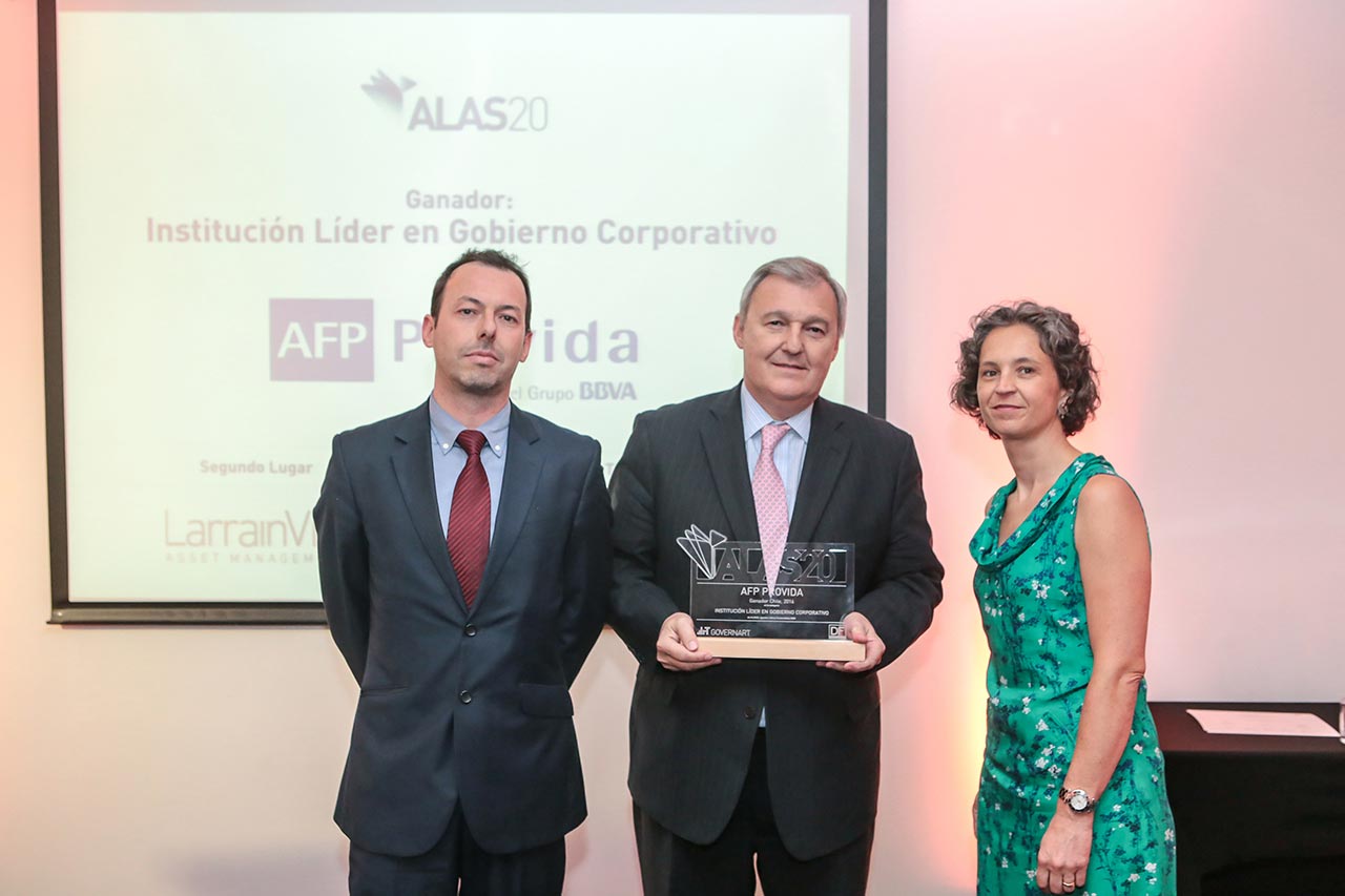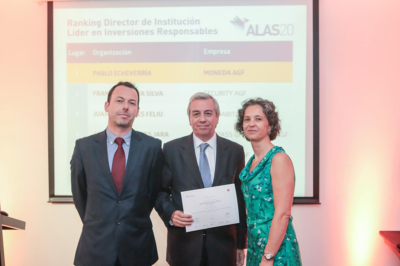 La categoría Institución ALAS20 es la categoría más importante a la que puede aspirar un inversionista en la Agenda Líderes Sustentables 2020, ya que se le otorga sólo a una institución de inversión, aquella que demuestre liderazgo, consistencia, y excelencia en la divulgación pública de información sobre sus prácticas de inversiones responsables, gobierno corporativo, e investigación en sustentabilidad.