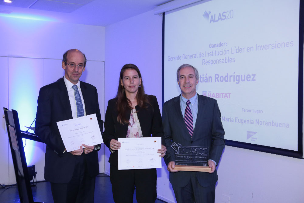 La categoría Grand Prix Institución ALAS20 es la categoría más importante a la que puede aspirar un inversionista institucional en ALAS20, ya que se le otorga sólo a una organización a nivel Latinoamericano, aquella que demuestre liderazgo, consistencia, y excelencia en la divulgación pública de información sobre sus prácticas de inversiones responsables, investigación en sustentabilidad, y gobierno corporativo.