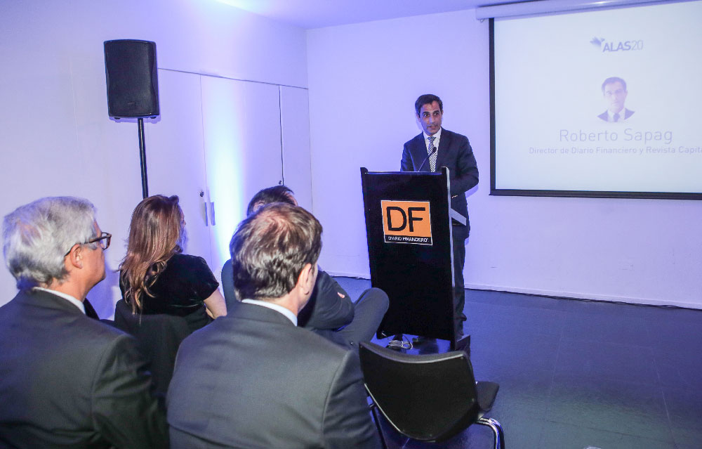 ALAS20 es una agenda programática que busca impulsar en América Latina el desarrollo sustentable desde la gestión empresarial y las decisiones de inversión, como una vía efectiva para lograr un mundo más sustentable, equitativo e inclusivo. Durante el año 2015, ALAS20 es realizada en Chile, Colombia y Perú, para continuar el año 2016 con México.