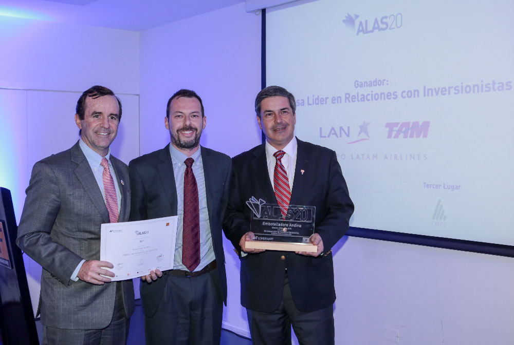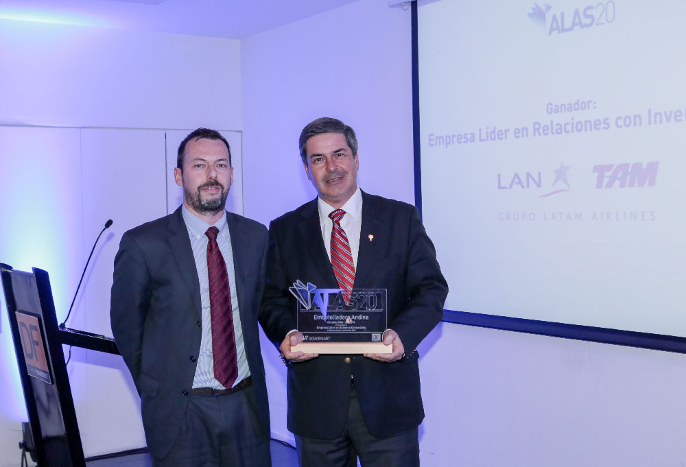 La categoría Grand Prix Empresa ALAS20 es la categoría más importante a la que puede aspirar una empresa en ALAS20, ya que se le otorga sólo a una empresa a nivel Latinoamericano, aquella que demuestre liderazgo, consistencia, y excelencia en la divulgación pública de información sobre sus prácticas de relaciones con inversionistas, desarrollo sustentable, y gobierno corporativo.